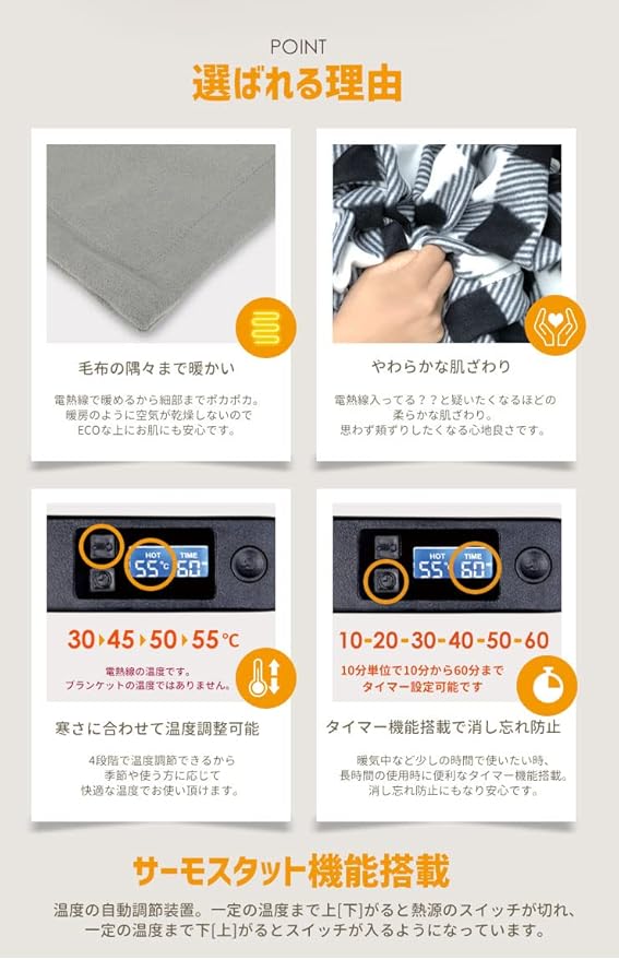 4段階で温度調節できるから、季節や使う方に応じて快適な温度でお使い頂けます。