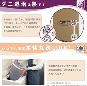 【本体丸洗いOK】本製品は、コントローラーを外すことで洗濯機で丸洗いが可能です。ダニ退治機能も搭載されておりますので、ダニ退治後に丸洗いすることで清潔にご使用になれます。※洗濯の際は、洗濯ネットをご使用ください※ドラム型洗濯機や乾燥機は使用不可