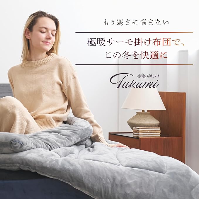 【羽毛布団を超える、贅沢なぬくもり。】GOKUMIN独自の多層構造で、寒さに負けない暖かさを実現。高密度フランネル、断熱アルミシート、吸湿発熱中綿を重ねることで、外気をしっかり遮断し、体温のぬくもりを逃さずキープ。寒い冬の夜も、布団に入った瞬間から「ほっ」と安らげる、上質なあたたかさをお届けします。