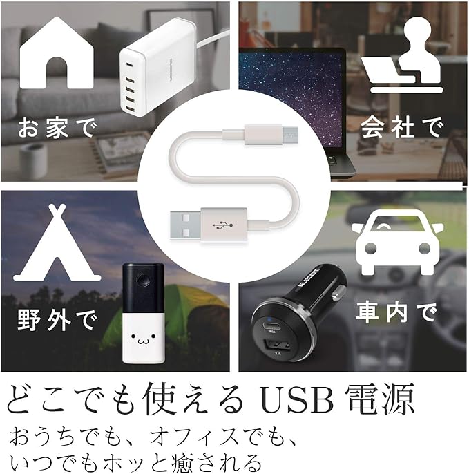 ■モバイルバッテリーを使用すれば、どこでもお使いいただけます。※モバイルバッテリーは付属していません。