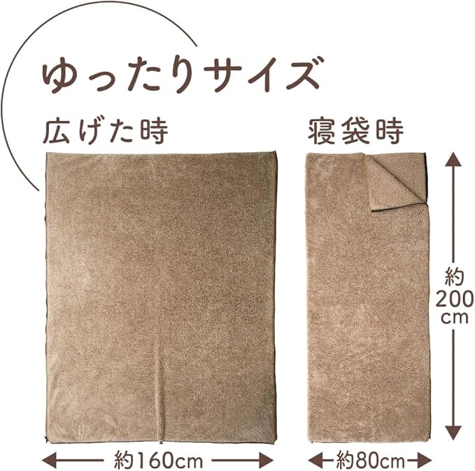 商品サイズ:[広げた時]縦200 横160(cm)、[寝袋時]縦200 横80(cm) 商品重量:1,300g 材質:ポリエステル100%