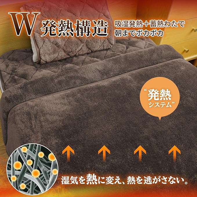 【世界初※!4種類の高機能中綿を融合した、超断熱・超蓄熱構造】断熱性能に優れるNASA由来のエアロゲル中綿を中心に、吸湿発熱中綿・蓄熱保温中綿・抗菌防臭の帝人マイティトップⅡ中綿4種の機能中綿を贅沢にサンド。さらにアルミシートも使てます。この独自の多層構造技術で毛布1枚に凝縮することで、電気使わずにまるで“電気毛布”のようなぬくもりが実現。寒冷地やエアコン節電派にも最適な、業界トップクラスの保温力。