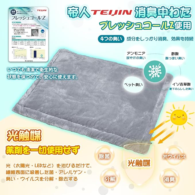 【帝人 グラフェンW抗菌・防臭】信頼の日本製TEIJINフレッシュコール中綿が消臭・抗菌効果を発揮。さらにグラフェンの力で、抗菌・防臭・防ダニ機能もパワーアップ。ペット特有のニオイが気になる冬でも、清潔&快適!