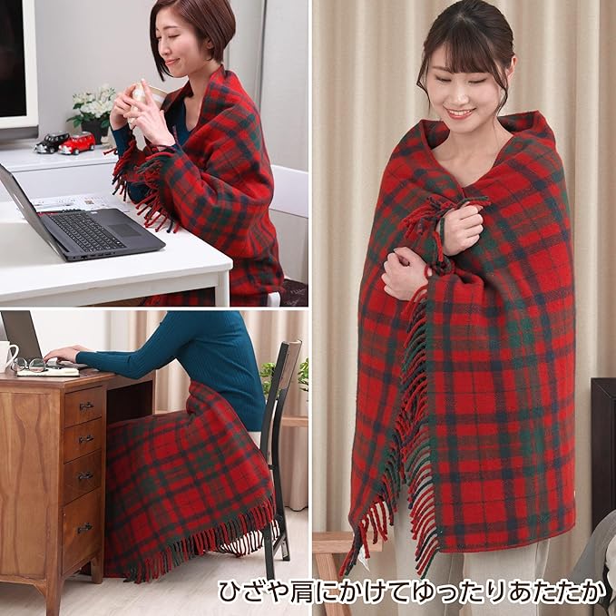 【おしゃれにあたたか】ふんわり手ざわりの良い厚手生地を採用。赤を基調としたタータンチェック柄がおしゃれな電気ひざかけです。