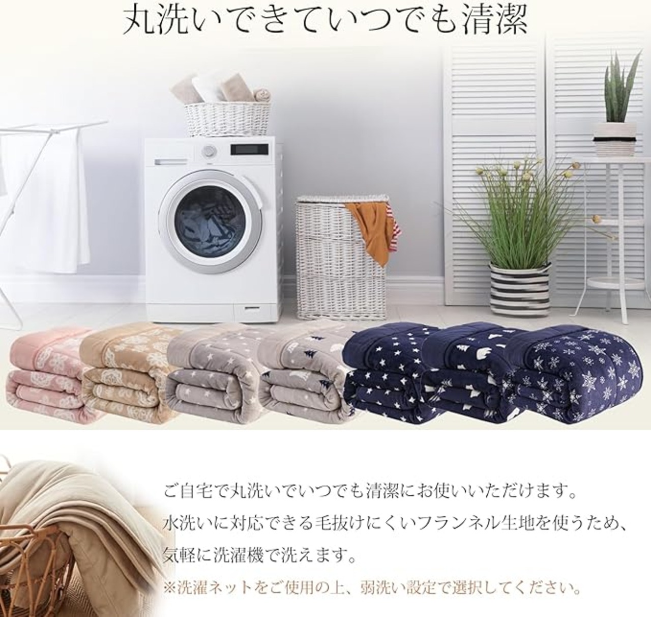 【洗濯可能 毛布布団】ご家庭でも簡単にお洗濯が可能です。いつも清潔でふわふわな使い心地をお楽しみ下さい。 高品質ポリエステルの特性で、長時間の使用や複数回洗濯しても色褪せにくく、毛玉になりにくくて耐用性が抜群です。※ご注意:お洗濯の際は、ネットに入れてください。