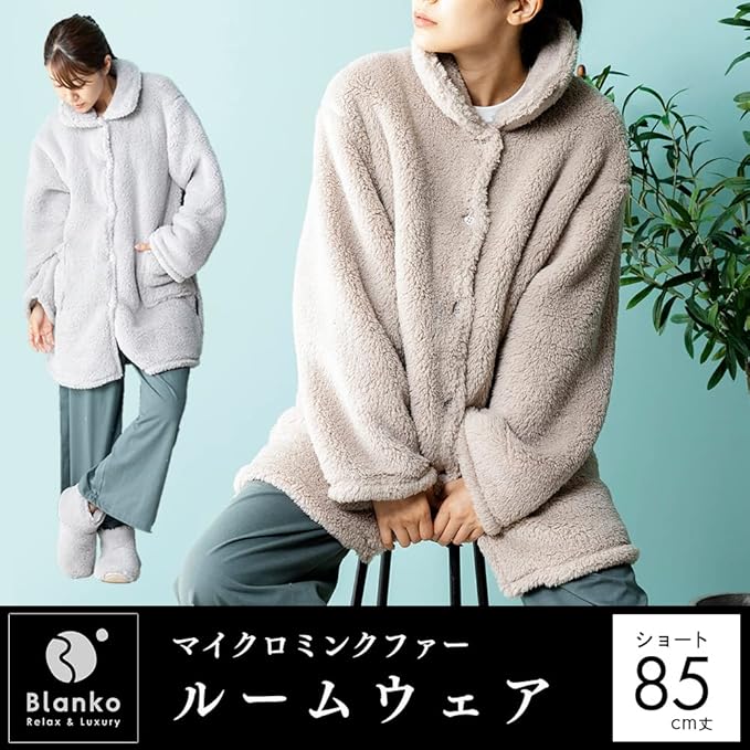 毛布屋さんが作ったふわふわかわいいブランケットで作ったルームウェアです。寒い日の朝、毛布にくるまれた暖かで幸せな感覚を一日中。ふわふわのマイクロミンクファーを可愛く着れるルームウェアです。長さ約10mmの超極細繊維が暖かい空気を包み込みます。大きめ襟で首元あったか。汚れても安心、丸洗いできるのでいつでも清潔にお使いいただけます。
